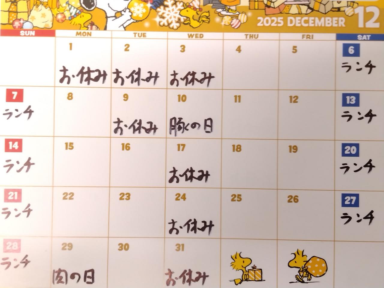 12月のお休みとランチ営業はカレンダー通りです。
